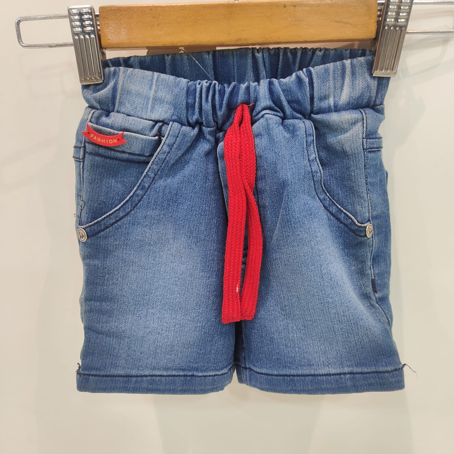 Give your child a stylish and comfortable look with these kids blue denim shorts with a red drawstring. Crafted from soft and durable denim fabric, these shorts offer the perfect balance of comfort and durability for everyday wear. The elastic waistband ensures a flexible and secure fit, making them easy to wear and ideal for active kids.