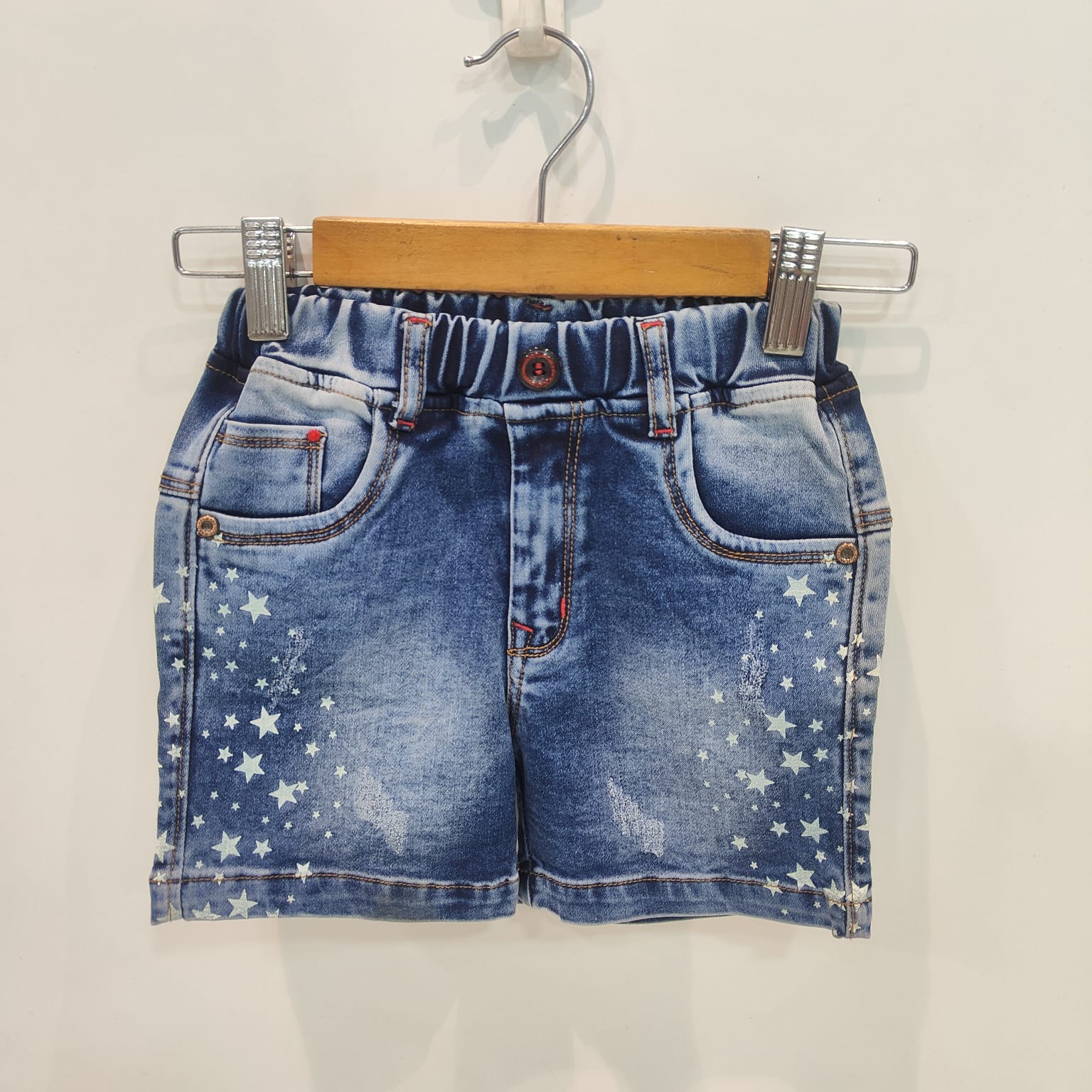 Give your child a trendy and playful style with these kids blue denim star print shorts. Designed with soft and durable denim fabric, these shorts provide both comfort and long-lasting quality for active kids.